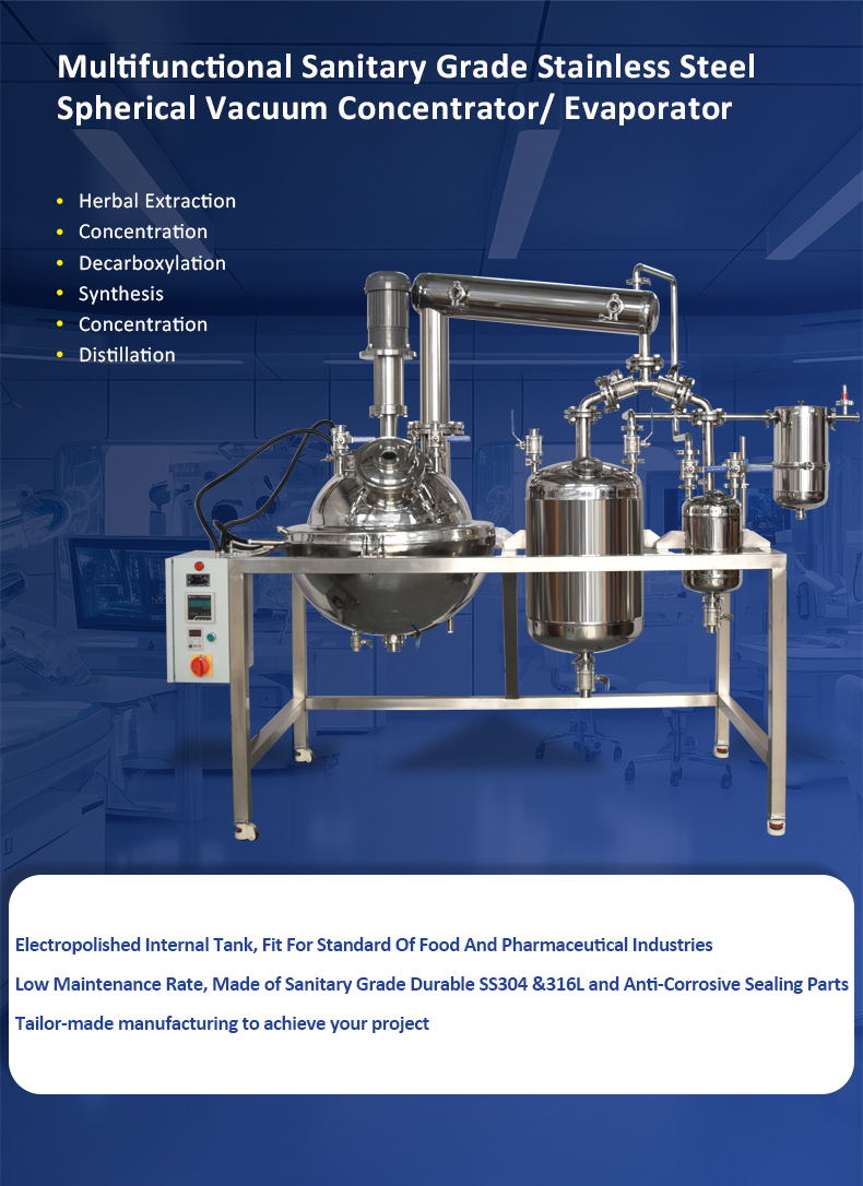 Concentrador de vacío multifuncional con forma de bola de acero inoxidable de grado sanitario de 100 L